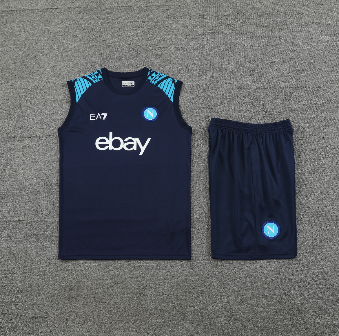Met deze officiële SSC Napoli 24/25 trainingsset (mouwloze top + strakke trainingsbroek) ben je klaar om te presteren – op het veld of op straat.