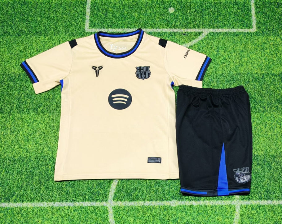 Laat je liefde voor Barça overal zien met het FC Barcelona Uitsetje 25/26. Dit complete setje bestaat uit het officiële uitshirt en het bijpassende broekje van het seizoen 2025/2026. Met een opvallend ontwerp dat afwijkt van de traditionele clubkleuren straalt dit tenue klasse, vernieuwing en trots uit – perfect voor fans die zich graag onderscheiden.