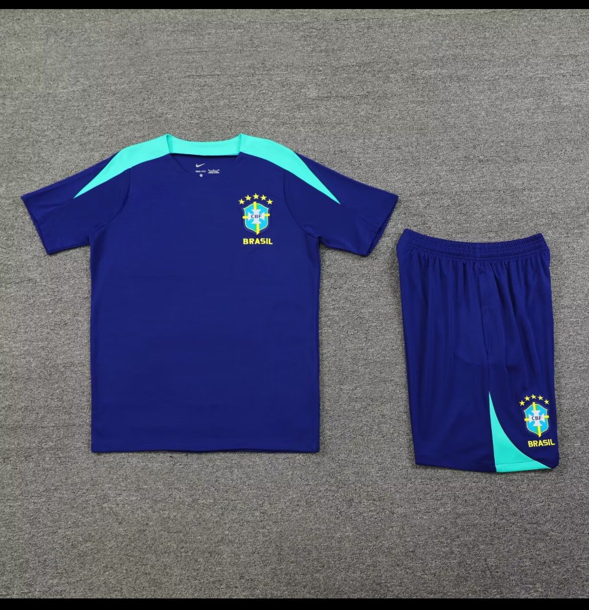Laat je training bruisen van energie en ritme met het officiële Brazilië trainingssetje 2024/2025. Deze tweedelige set – bestaande uit een ademend trainingsshirt en een bijpassende short – combineert sportieve functionaliteit met de flair en trots van een vijfvoudig wereldkampioen. Gemaakt voor zij die bewegen met overtuiging.