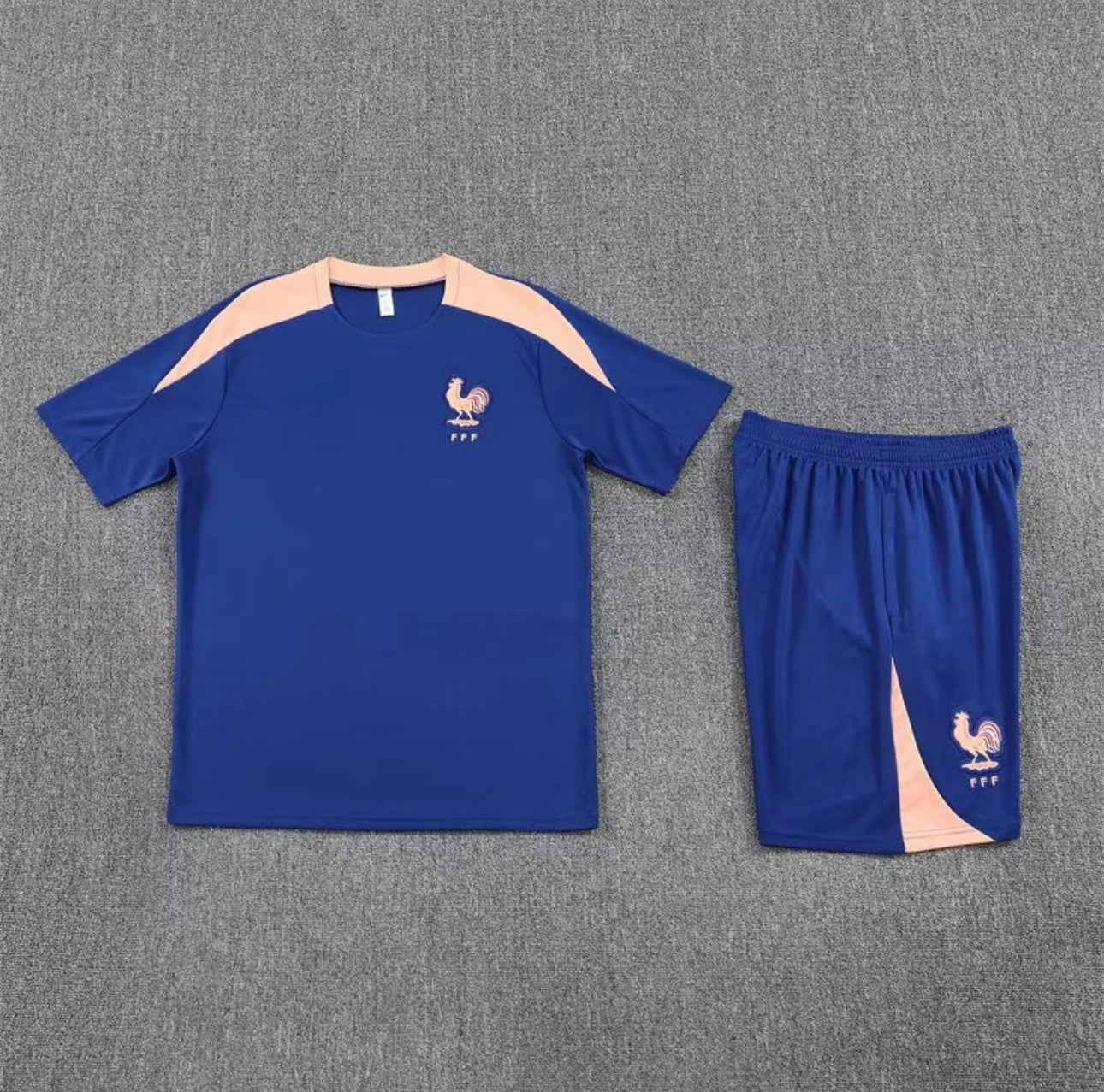 • Strak en modern ontwerp – In de klassieke marineblauwe kleuren van Frankrijk, met subtiele rode en witte details en het officiële FFF-embleem op shirt en short.