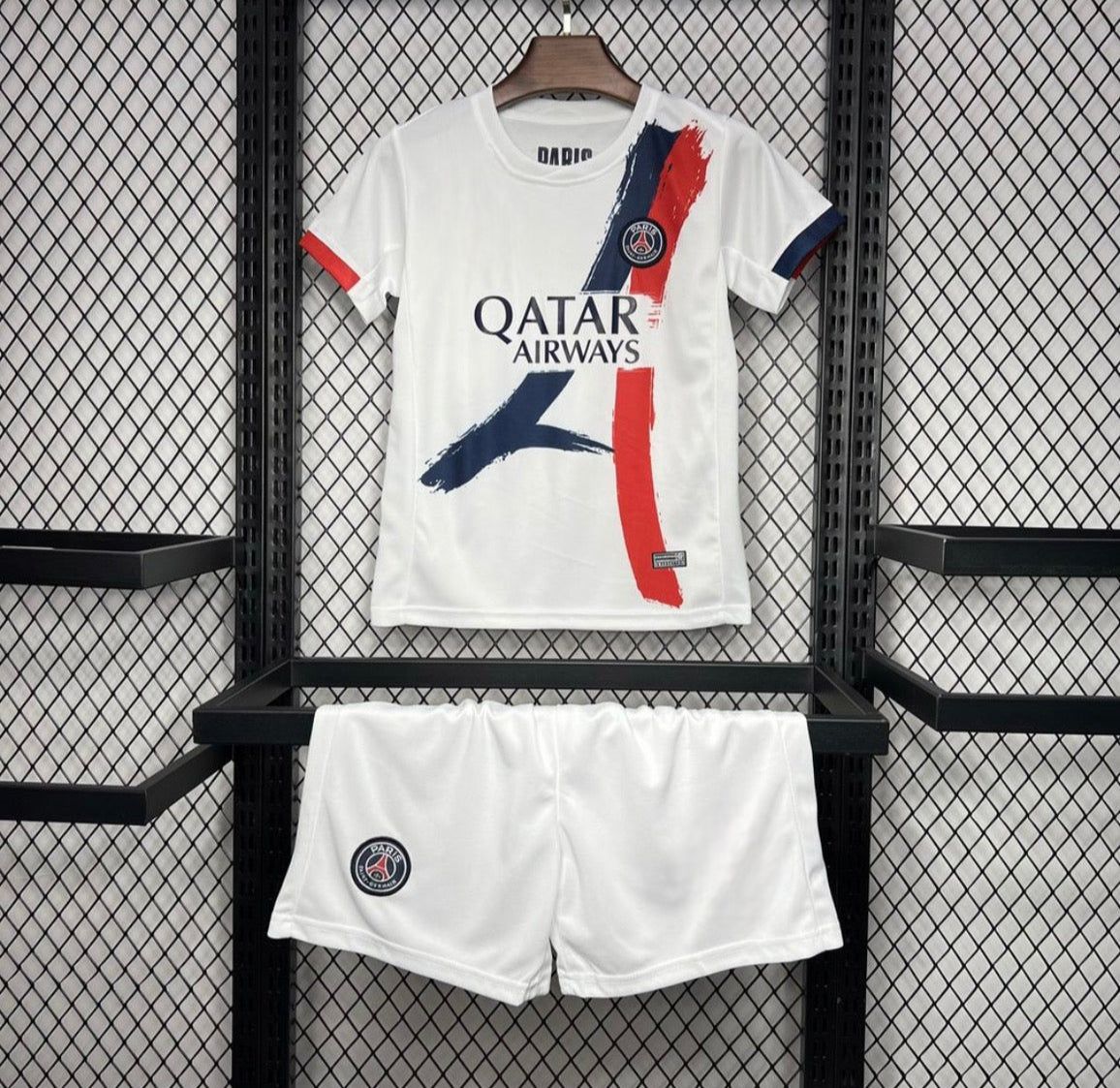 Straal stijl, elegantie en vastberadenheid uit met het PSG Uitsetje voor het seizoen 2024/2025. Deze set – bestaande uit een zorgvuldig ontworpen shirt en een bijpassend broekje – is het perfecte voorbeeld van hoe modern design en sportieve identiteit hand in hand gaan. Voor de fan die zijn clubgevoel met zelfvertrouwen wil tonen, op elk moment van de dag.