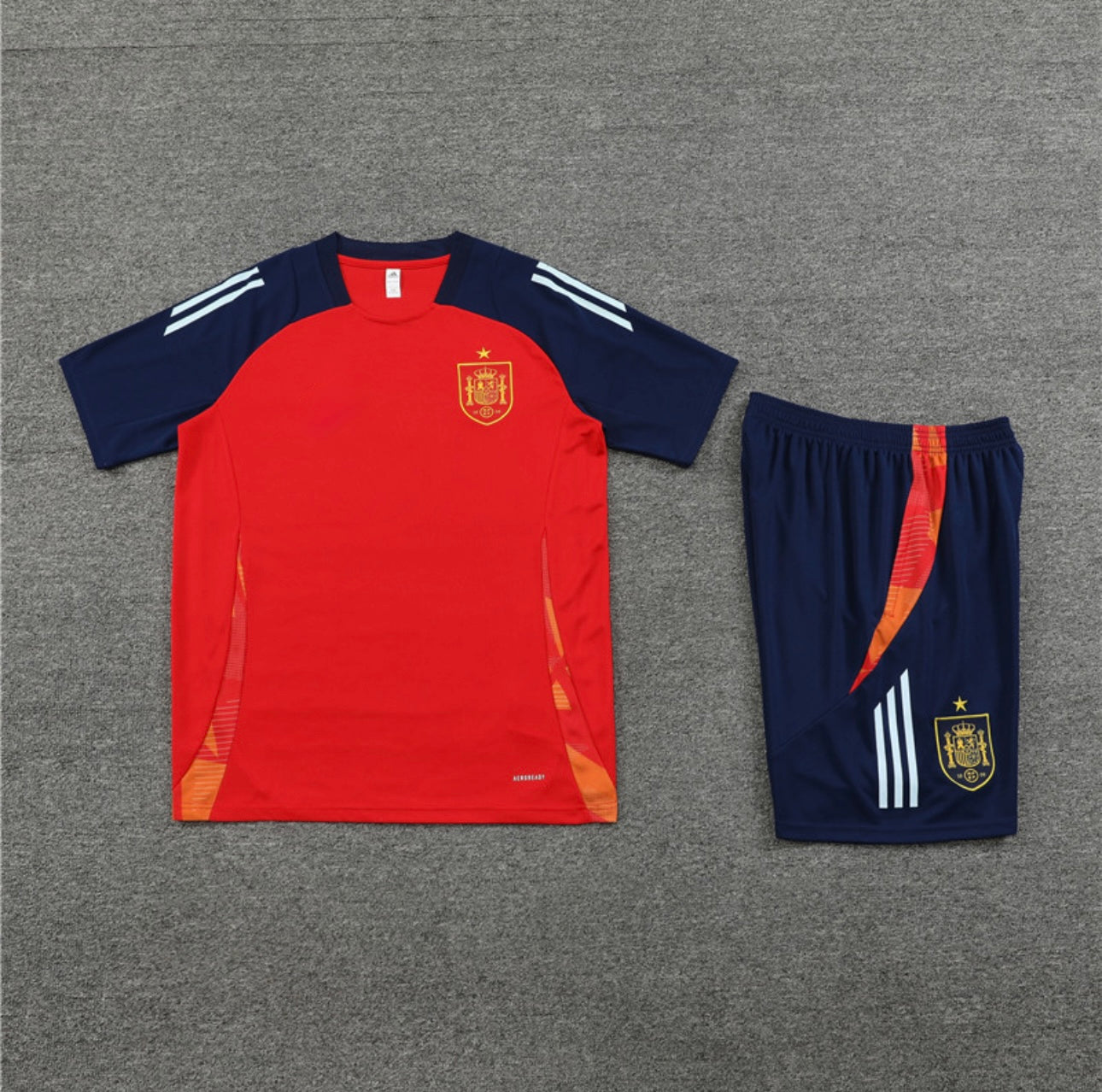 Het Spanje Trainingssetje 2024/2025 is ontworpen voor sporters en fans die willen trainen met dezelfde intensiteit, flair en precisie als La Roja. Dit complete setje, bestaande uit een ademend trainingsshirt en bijpassende short, biedt optimale bewegingsvrijheid en comfort. Perfect voor trainingen, workouts, voetbalwedstrijden of gewoon als sportieve look waarmee je jouw Spaanse trots toont.